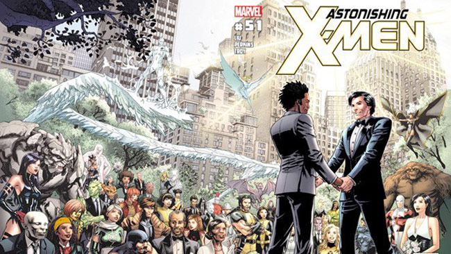 The characters felt they had to hide who they actually were from the world, which prompted Professor X to create the House of Xavier. There, people were accepting and it was a safe place for the heroes to be who they wanted. Some of the characters, like Anole, Shatterstar, Rictor, Karma, and Daken, have all come out as queer throughout the stories. A great example is Mystique, who not only is fluid, but can switch genders at will. Though for a long time many of the X-Men relationships weren’t allowed to be portrayed on screen, there was a breakthrough in 2012 when Northstar married Kyle Jindau. This made worldwide news, since it was the first depiction of a same-sex marriage in mainstream comics.