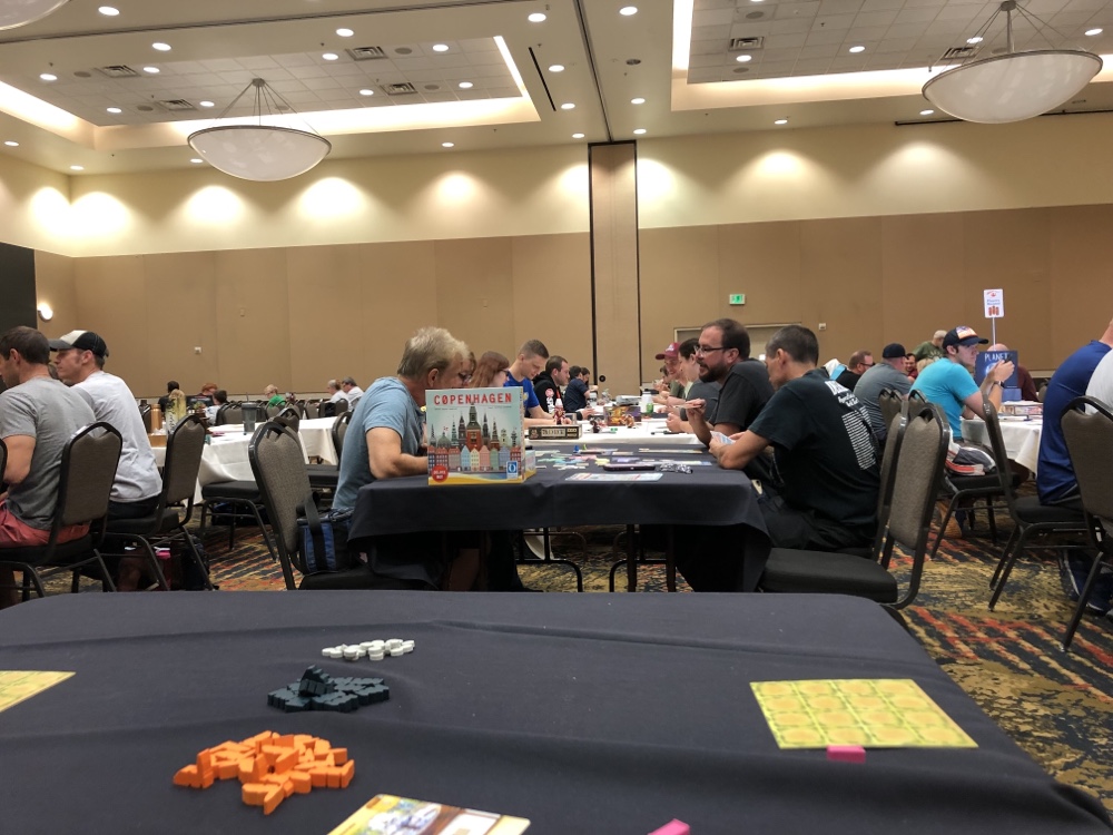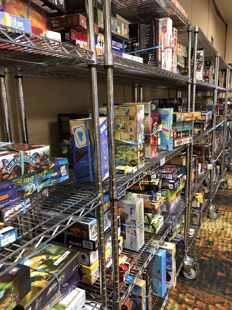 The convention center mainly comprised of three areas, the open gaming floor where there are hundreds of tables for you to claim and start playing games, the RPG room where you could play Dungeons and Dragons or other TtRPGs, and the Game Library, where you could check out any of the hundreds and hundreds of games. Literally an entire room of bookshelves that were full of different board and card games.