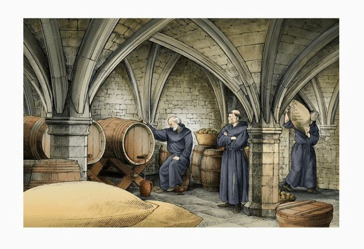 - Religious abbeys and monasteries owned land, which they often used to grow grapes to make and sell wine. In this instance they owned an entire village, much like a noble lord would, and took payment from rent as a way to support their religious work.